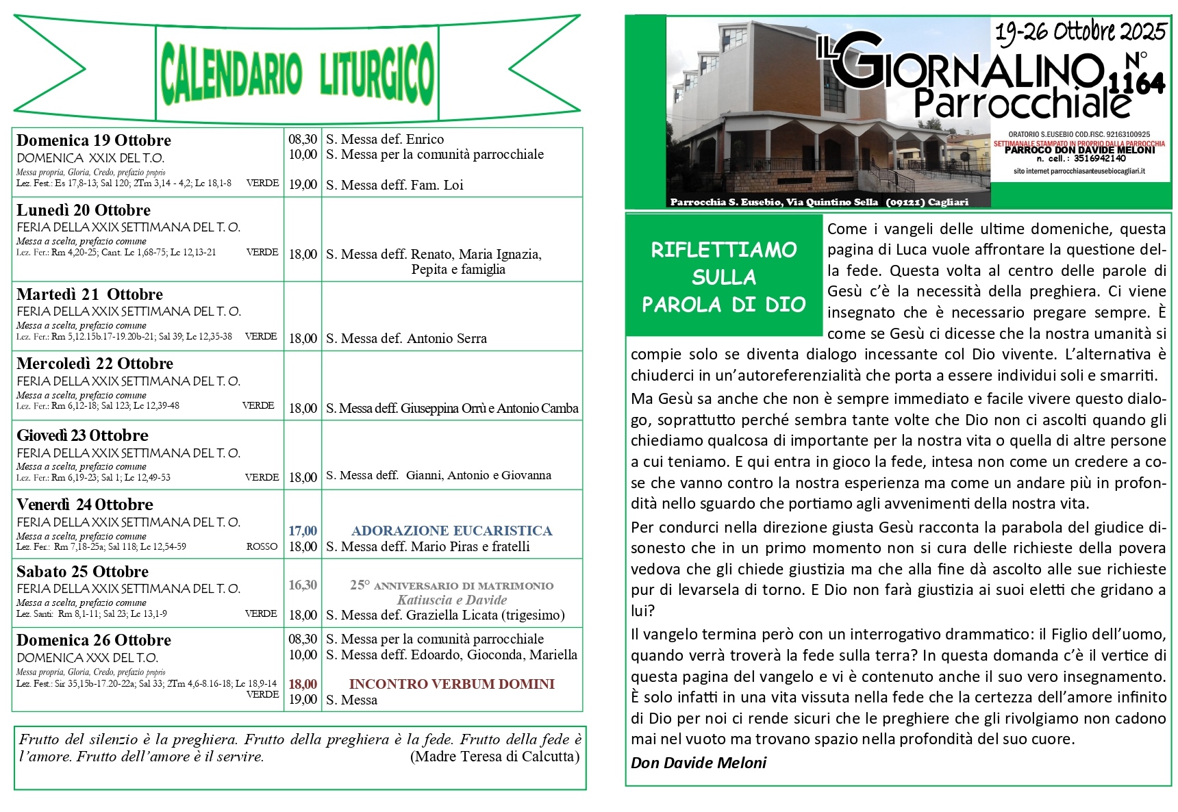• Calendario liturgico e giornalino parrocchiale 19 – 26 ottobre 2025