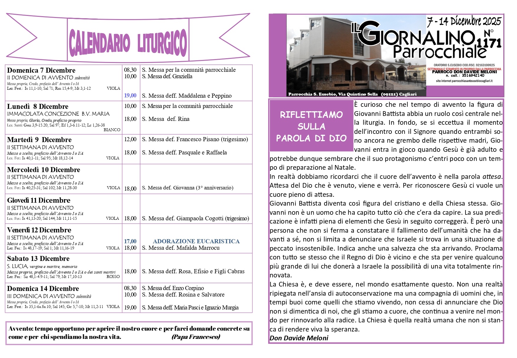 • Calendario liturgico e giornalino parrocchiale 7-14 dicembre 2025
