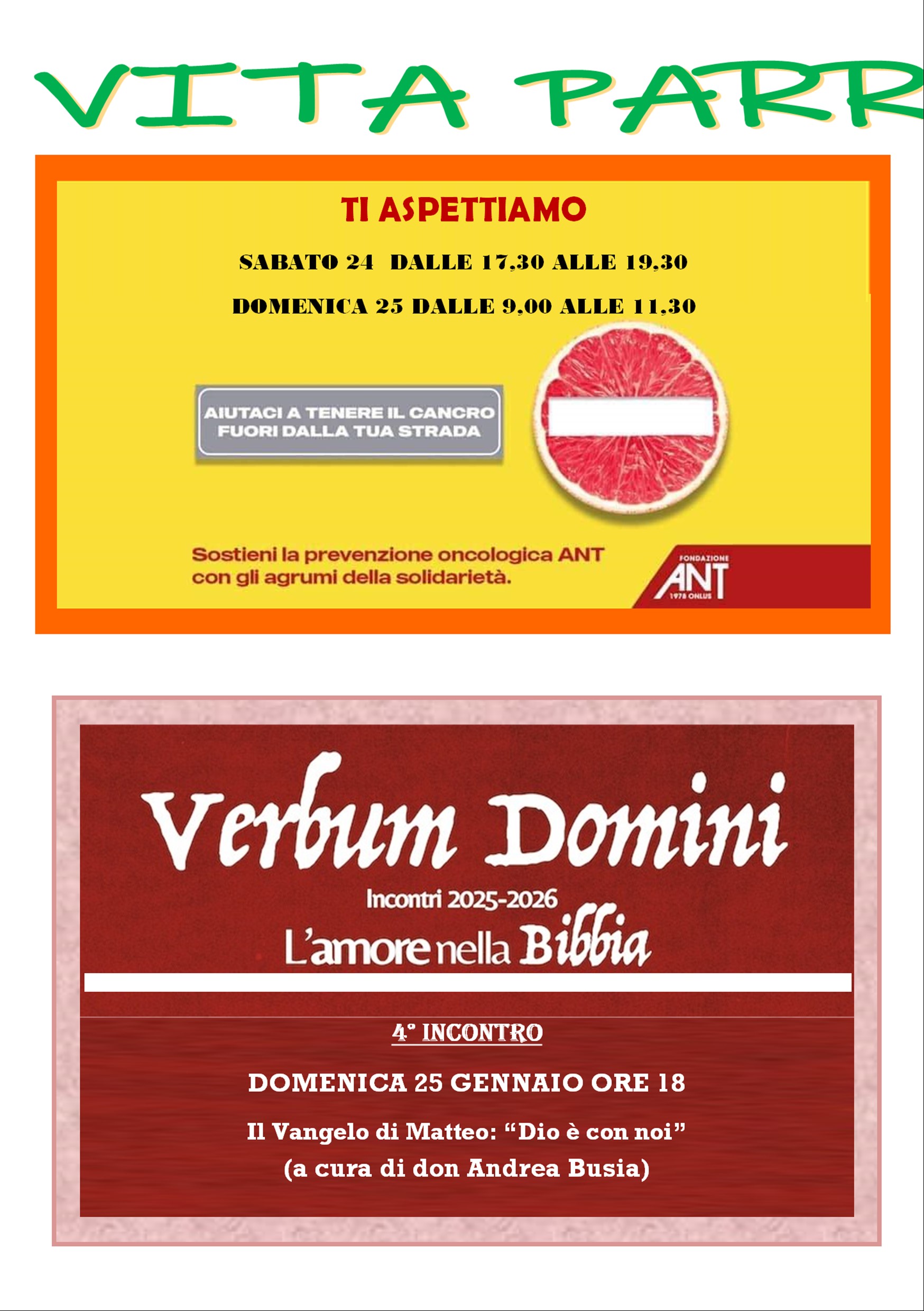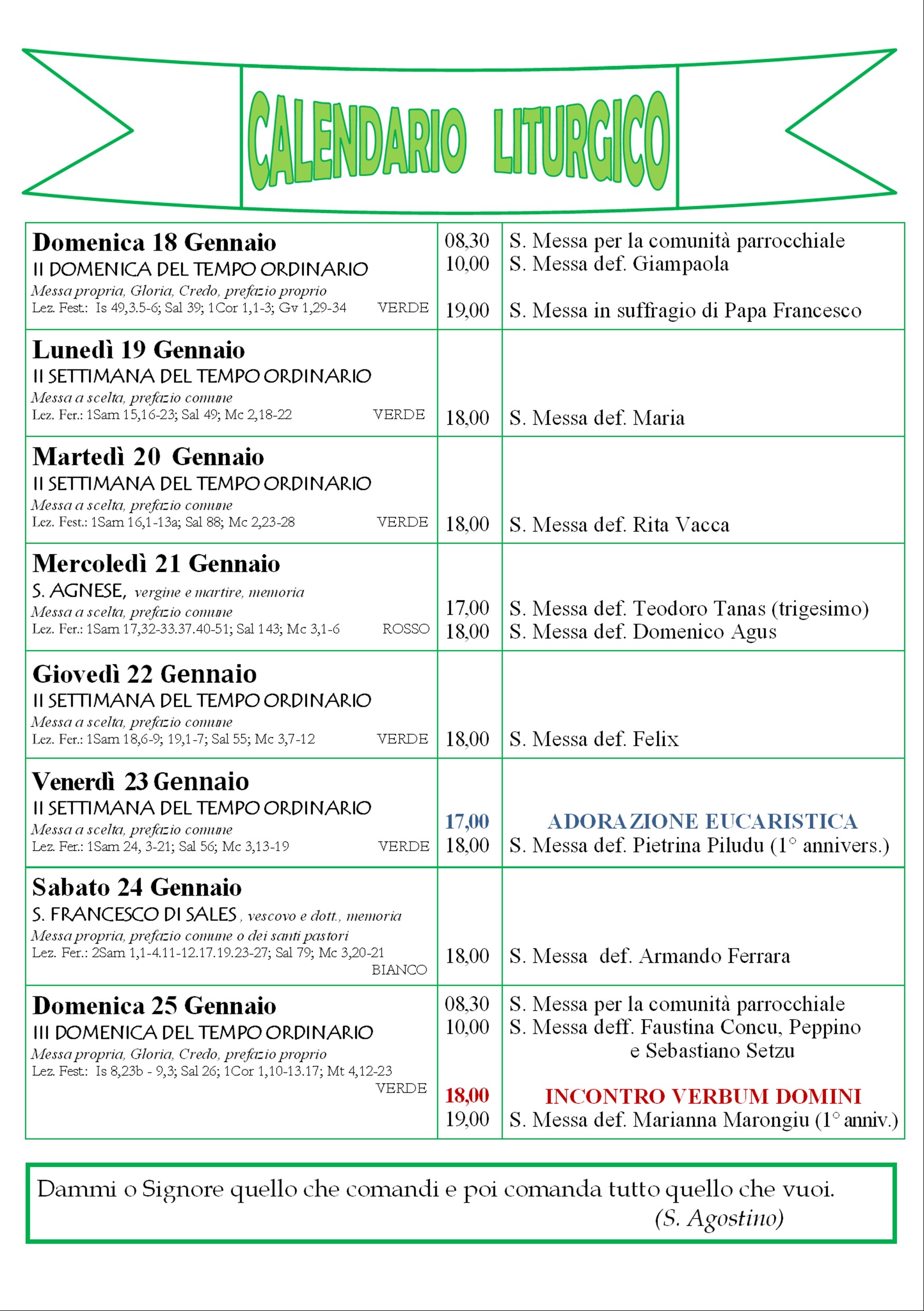 • Calendario liturgico e giornalino parrocchiale 18 – 25 gennaio 2026