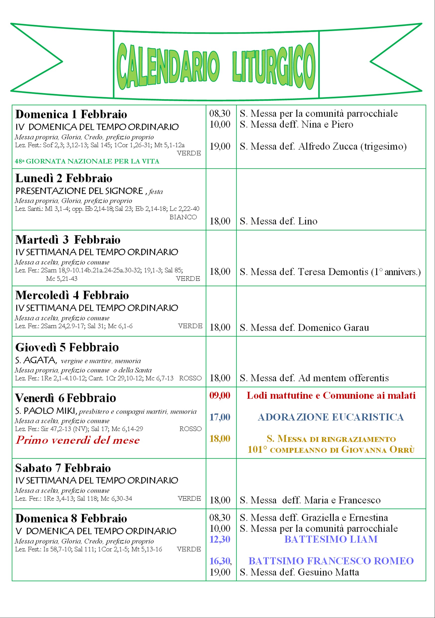 Calendario liturgico e giornalino parrocchiale 1-8 febbraio 206