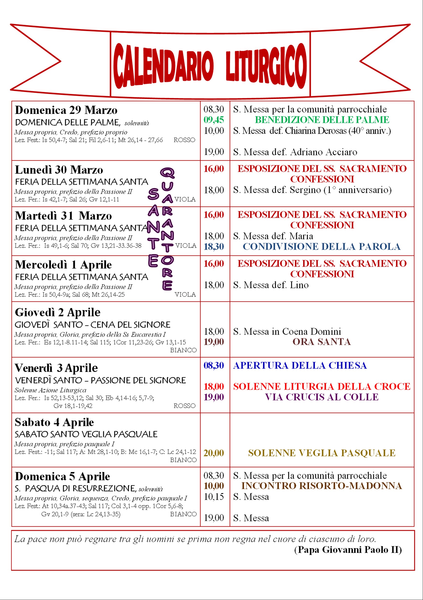 • Calendario liturgico